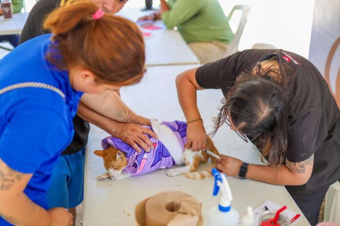 Ahí el personal de Gobierno Municipal de Reynosa atendió a 106 mascotas, 55 caninos y 32 felinos cin 74 vacunas antirrábicas, 82 desparasitaciones interna y externa, 17 consultas médicas básicas, 19 esterilizaciones, además de administración vía oral contra pulgas y garrapatas de Nexgard y Bravecto.