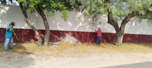 Este día, sábado 6 de septiembre cuadrillas del R. Ayuntamiento trabajan en la limpieza, chapoleo y saneamiento del kínder Elizabeth Galván de Lozano de la colonia Jesús Vega Sanchez.