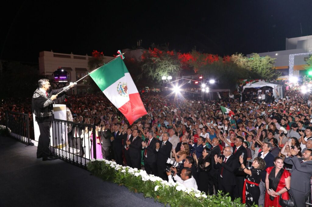 Ciudad Victoria, Tamaulipas. – Miles de familias tamaulipecas se congregaron en la Plaza Juárez de esta capital para conmemorar el 215 aniversario del Grito de Independencia, acto encabezado por el gobernador Américo Villarreal Anaya, quien en su arenga vitoreó a nuestros hermanos y hermanas migrantes, a la honestidad y la justicia, y a los independentistas tamaulipecos.