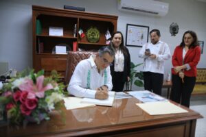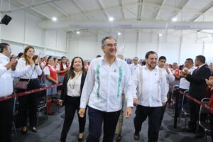 “Hace más de 30 años, un gobernador de voluntad y trabajo, el ingeniero Américo Villarreal Guerra, entregó en este mismo lugar una techumbre que por años fue refugio y punto de encuentro de la comunidad normalista, y hoy aquel legado, que se convirtió en un símbolo de confianza en el futuro, es honrado y prolongado por nuestro gobernador Américo Villarreal Anaya”, expresó.