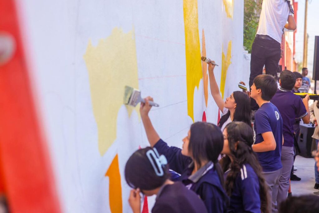 Reynosa, Tam.- El Gobierno del Alcalde Carlos Peña Ortiz tuvo una participación destacada en la Segunda Jornada Nacional de Tequios y Murales «Por la Paz y Contra las Adicciones», impulsada por la Presidenta Claudia Sheinbaum Pardo, en la que estudiantes de la escuela preparatoria José de Escandón se integraron en los más de 1 millón 200 mil jóvenes que este día, viernes 25 de septiembre, trazaron líneas y colores en 8 mil intervenciones artísticas.