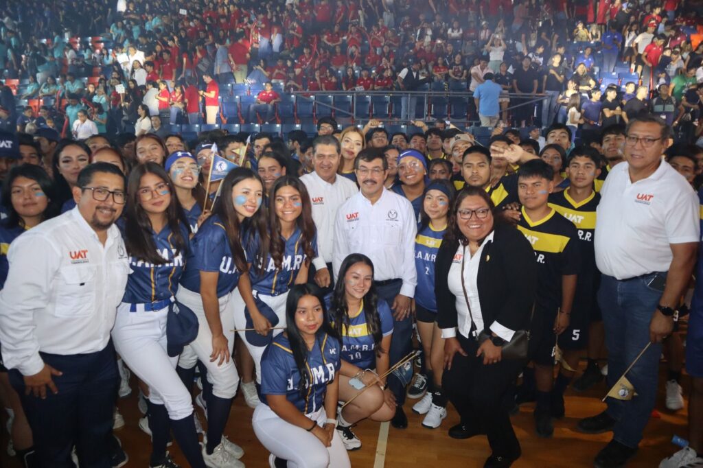 Reynosa, Tam.- Con el entusiasmo y la energía que caracteriza al espíritu universitario, el rector de la Universidad Autónoma de Tamaulipas (UAT), Dámaso Anaya Alvarado, inauguró los Juegos Deportivos Interfacultades 2025 Zona Norte, en ceremonia celebrada en el Gimnasio Multidisciplinario de Reynosa, donde se congregaron delegaciones deportivas de las distintas facultades y unidades académicas de esta región del estado.