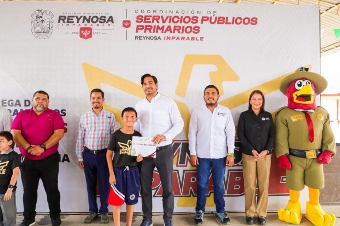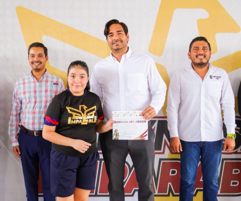 Reynosa, Tam.- «El día de hoy ya son Guardianes del Orden, aprendieron a cuidar el medio ambiente, no tirar basura; todo eso es importante para nuestra ciudad, debemos evitar que haya quien tire basura en lugares clandestinos porque debe ir en el basurero o el contenedor, gracias por ayudar», dijo el Alcalde a la emocionada comunidad escolar de la Primaria Moctezuma.