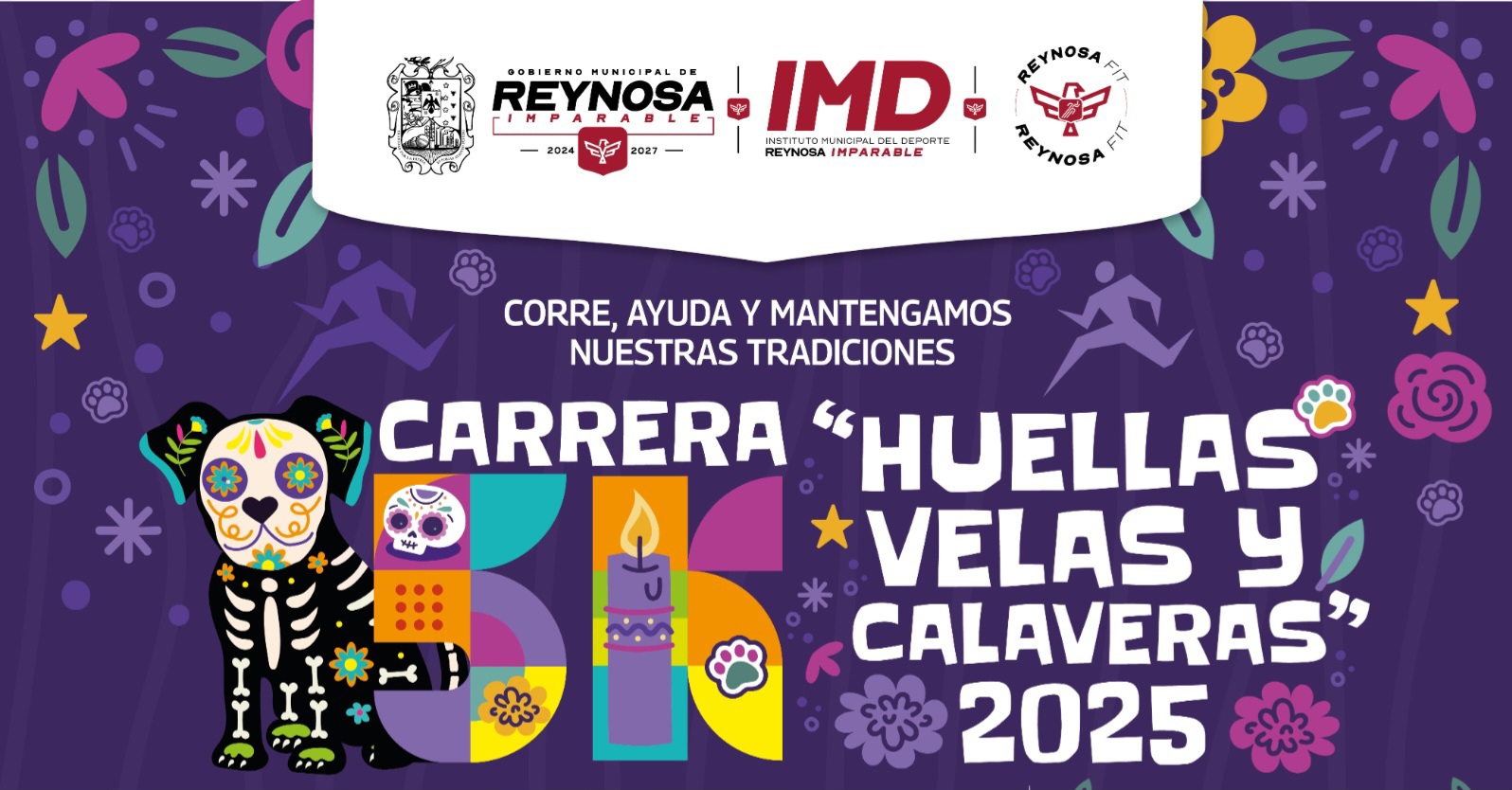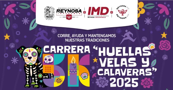 Reynosa, Tam.- El Alcalde Carlos Peña Ortiz, invita a la ciudadanía a participar en la carrera 5K con causa Huellas, Velas y Calaveras 2025, que se llevará a cabo el próximo 2 de noviembre a las 7:00 de la mañana, partiendo del Museo del Ferrocarril, Arte y Maquila.