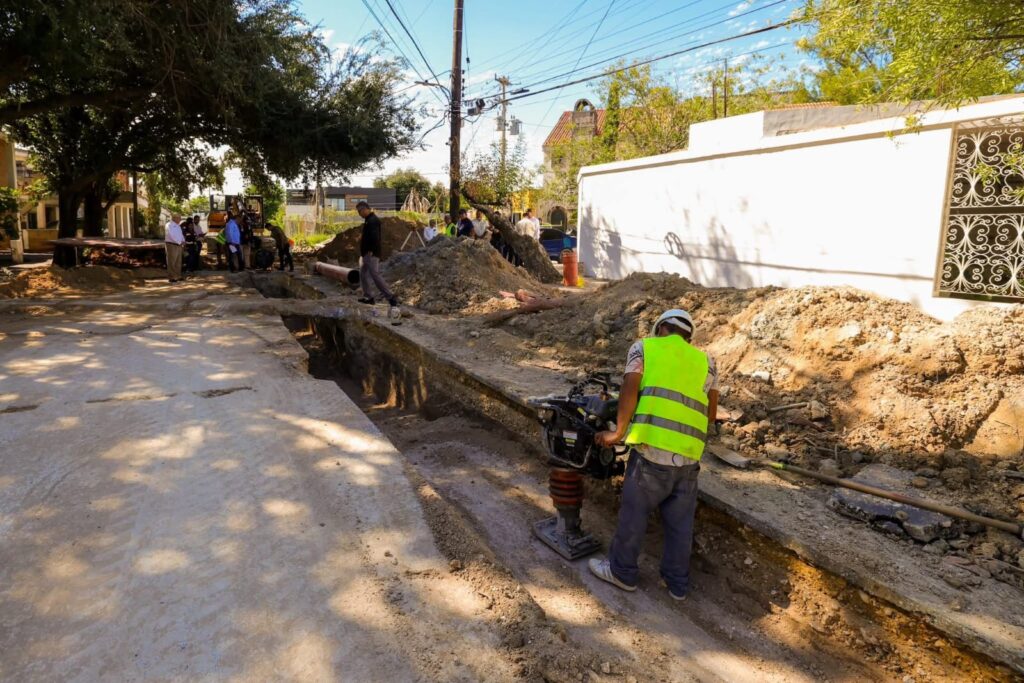 Mediante el Programa de Obra Pública Más Grande en la Historia de Reynosa 2025, son rehabilitados con nueva tubería más de 400 metros lineales que incluyen 6 construcciones de descargas sanitarias de PVC de 20 y 30 centímetros de diámetro.