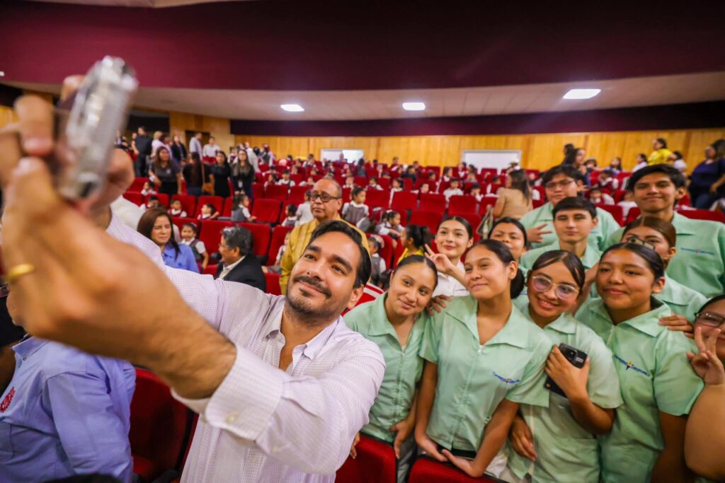 «Ustedes pueden hacer la universidad, luego sigue una maestría, un doctorado, la educación continua para poder ir capacitándote en los temas que a ustedes les importan y que puedan tener un impacto real en nuestra sociedad», dijo el Alcalde ante alumnos de preparatoria, secundaria y primaria.