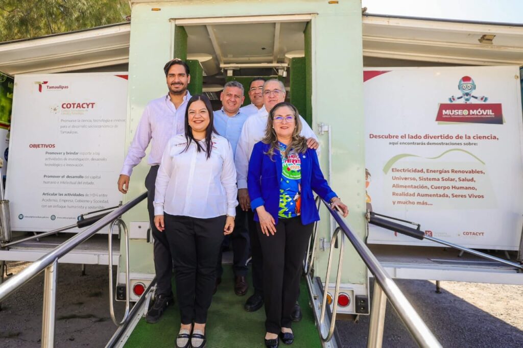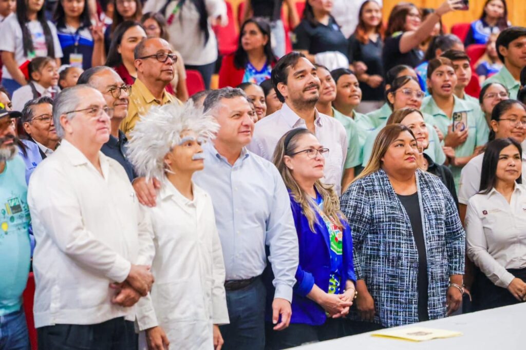 Reynosa, Tam.- El Alcalde Carlos Peña Ortiz participó en la inauguración de la 10ª Feria Infantil de la Ciencia, Tecnología y Arte 2025 en las instalaciones del edificio polifuncional del Centro de Biotecnología Genómica del IPN en Reynosa, acompañando a la Directora del CBG, Amanda Alejandra Oliva Hernández y al Secretario de Administración del Instituto Politécnico Nacional, Doctor Javier Tapia.
