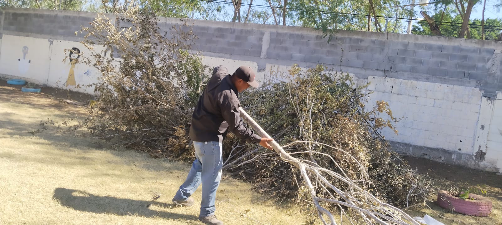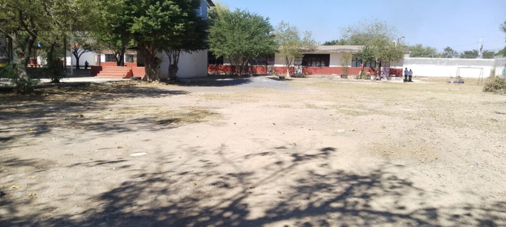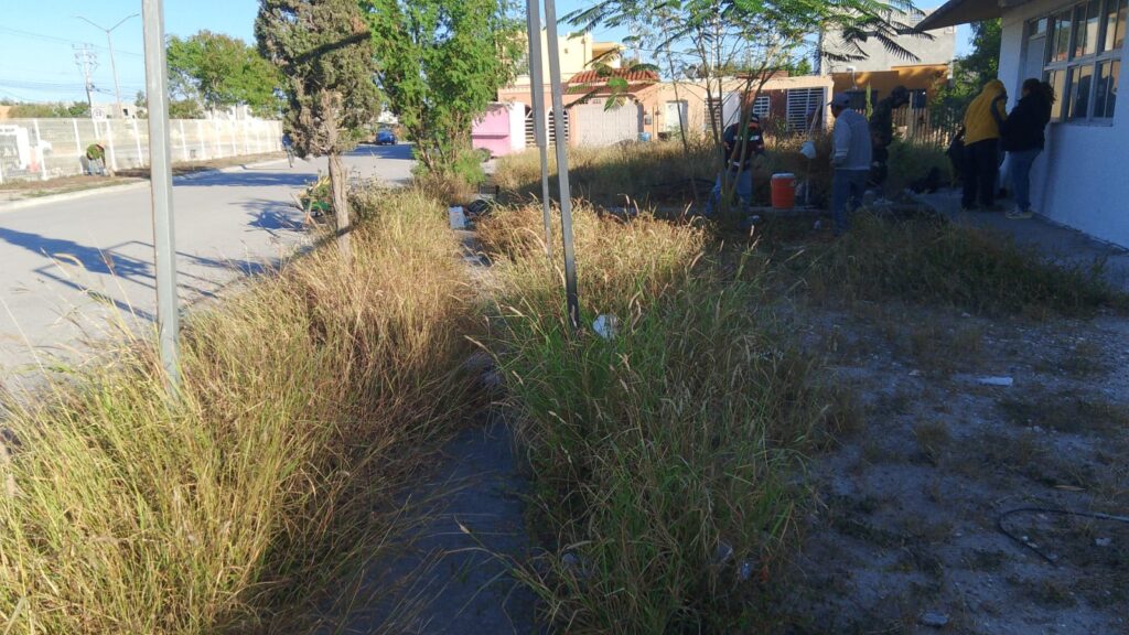– Continuación de limpieza general en la escuela primaria Pedro María Anaya, ubicada en la calle Campeche de la colonia Lampacitos, con el objetivo de evitar la reproducción de fauna nociva y brindar un espacio seguro para los alumnos de este plantel.