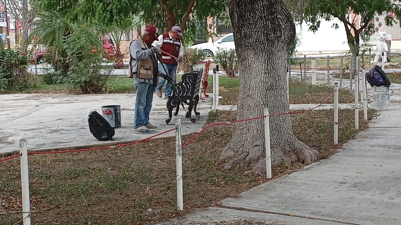 Reynosa, Tam. – El Gobierno Municipal de Reynosa, que preside Carlos Peña Ortiz, está llevando a cabo un importante trabajo de mantenimiento y embellecimiento en la colonia Petrolera, donde la plaza pública es objeto de limpieza para que las familias la disfruten con mayor confianza. Además, se aplicó pintura anticorrosiva esmalte color gris en las bancas metálicas lo que ayudará a protegerlas de la corrosión.