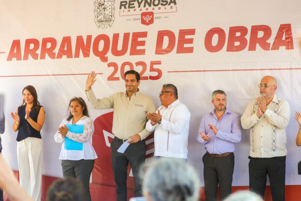 Reynosa, Tam.- Vecinos de la colonia Ampliación 16 de septiembre encabezados por la señora Esmeralda Martir Ávila recibieron al Presidente Municipal Carlos Peña Ortiz, con quien dieron arranque a la pavimentación de la calle Agustín Melgar; más de 800 metros cuadrados entre Juan Escutia y avenida Independencia.