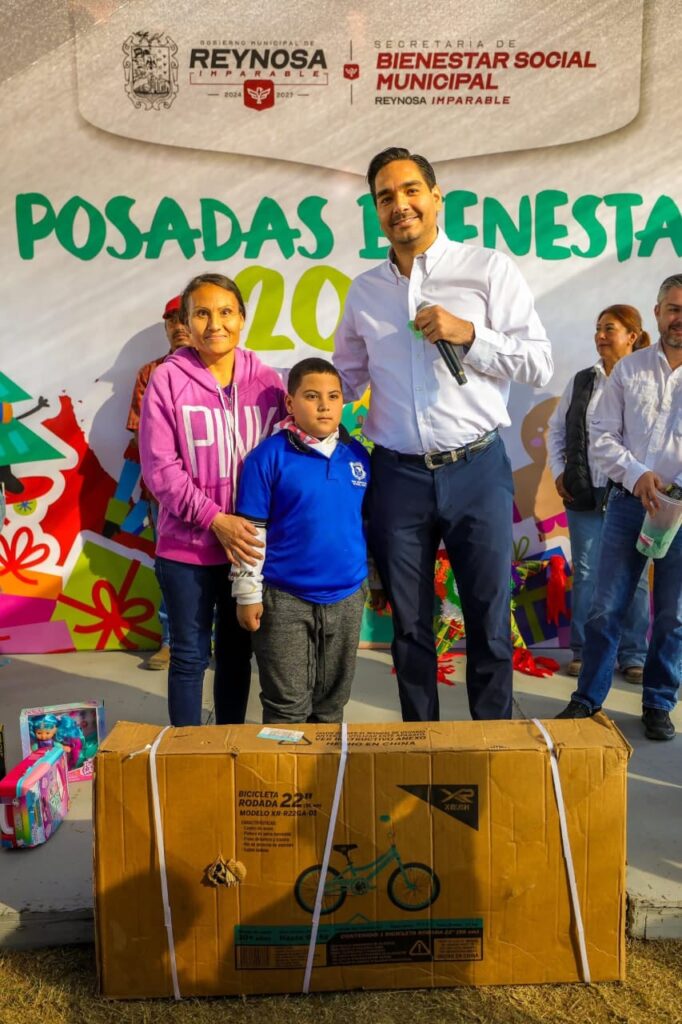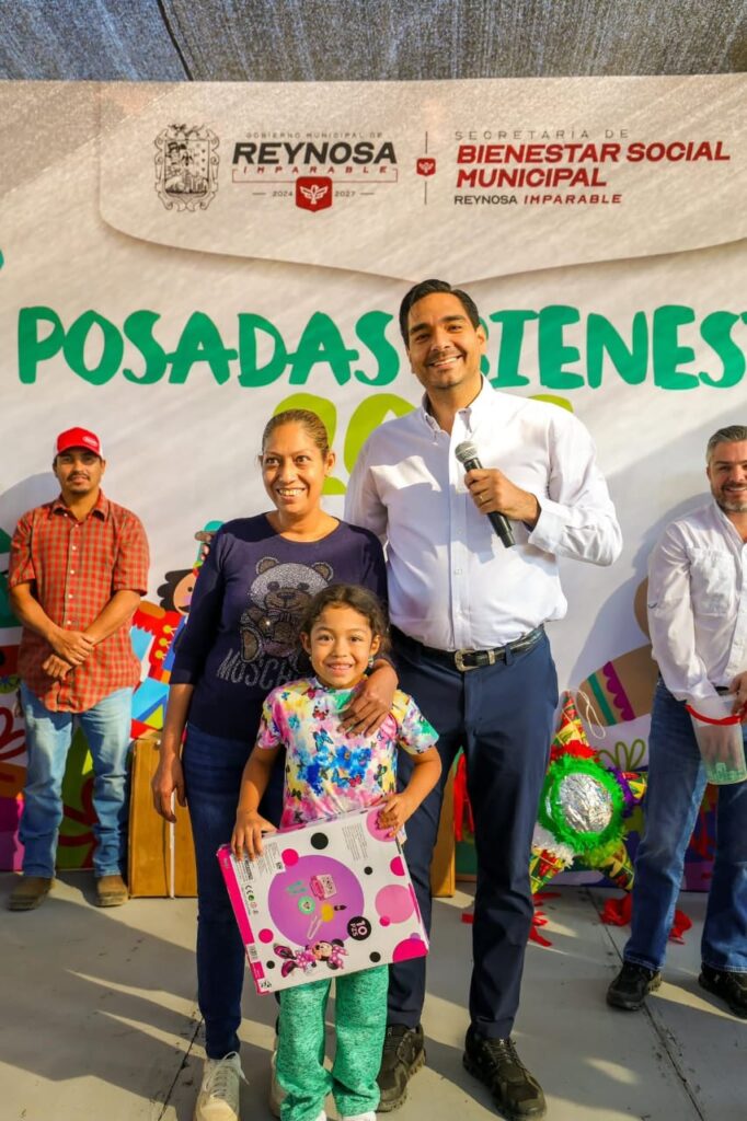 Reynosa, Tam.- El Alcalde Carlos Peña Ortiz llevó la magia de la Navidad al ejido Reynosa Díaz con una Posada Bienestar. Los niños y grandes disfrutaron de un día lleno de alegría, diversión y muchos regalos, además de un bonito show de Payasos.