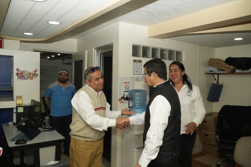 A lo largo del recorrido, Dámaso Anaya sostuvo un diálogo cercano con el personal administrativo, destacando su relevancia en el funcionamiento de la Universidad, y reconoció su compromiso para contribuir al cumplimiento de las metas institucionales.