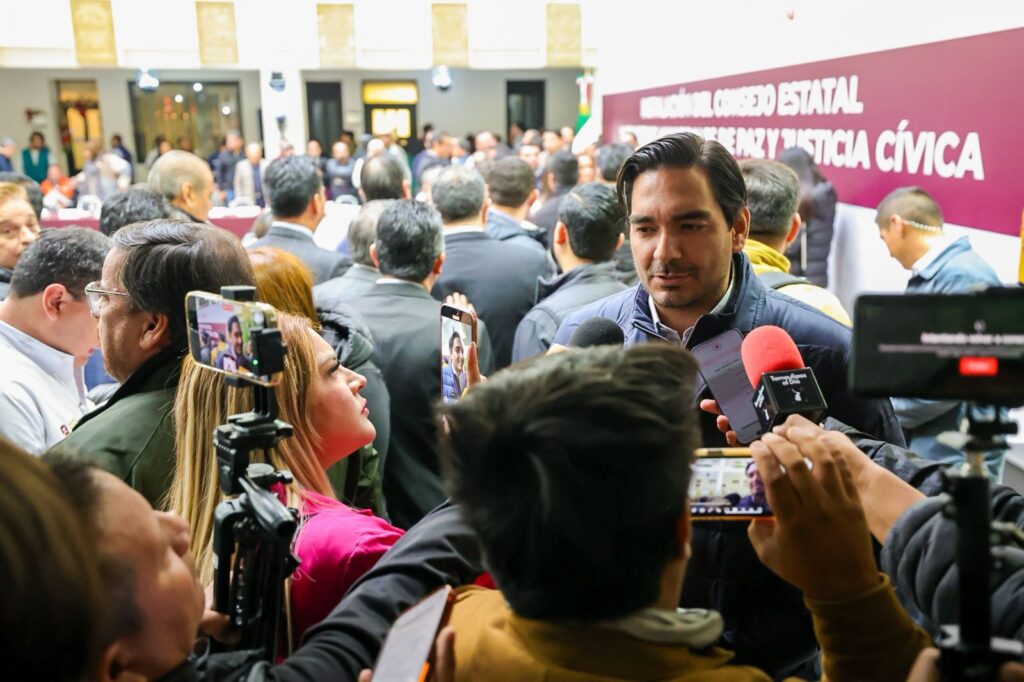 Tras participar en la Instalación del Consejo Estatal y Consejos Municipales de Paz y Justicia Cívica, el Alcalde aseguró que la administración del agua en las COMAPAS corresponde a la CNA, «y la dispersión sí la hace el Municipio, sin embargo algo muy importante que pido yo a los diputados, a los senadores, al gobierno federal, y también a la que estamos participando los municipios, es que en este nuevo tratado de libre comercio que se va a estar llevando para el dos mil veintiséis, también se contempla el tema del agua, yo creo que tenemos que crear las condiciones para que haya seguridad hídrica para las siguientes generaciones».