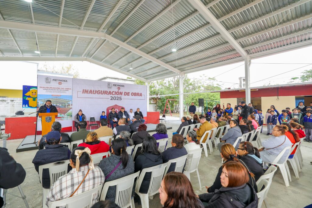 Reynosa, Tam.- «Las condiciones climáticas de nuestra región representan un reto constante que limitaba el uso de nuestras áreas comunes, hoy gracias a su gestión y apoyo a la educación, señor Presidente Municipal, contamos con una infraestructura moderna», declaró el Profesor Javier Abdiel Valdivieso Salazar.