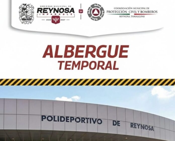 Reynosa, Tam.- El Gobierno del Alcalde Carlos Peña Ortiz habilitó el Albergue Temporal en el Polideportivo Reynosa, ubicado en la carretera a Matamoros, colonia La Escondida, para brindar protección a personas vulnerables debido a las bajas temperaturas registradas desde esta madrugada.
