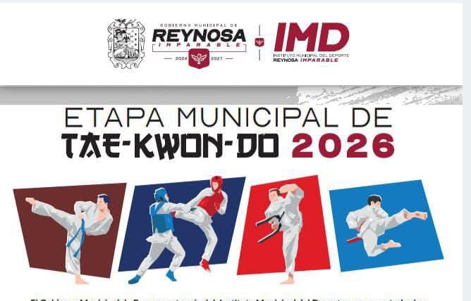 Reynosa, Tam.-  Con el objetivo de impulsar el deporte y detectar nuevos talentos, el Alcalde Carlos Peña Ortiz, invita a la comunidad deportiva a participar en la Olimpiada Municipal en la disciplina de Taekwondo, evento válido rumbo al Nacional CONADE.