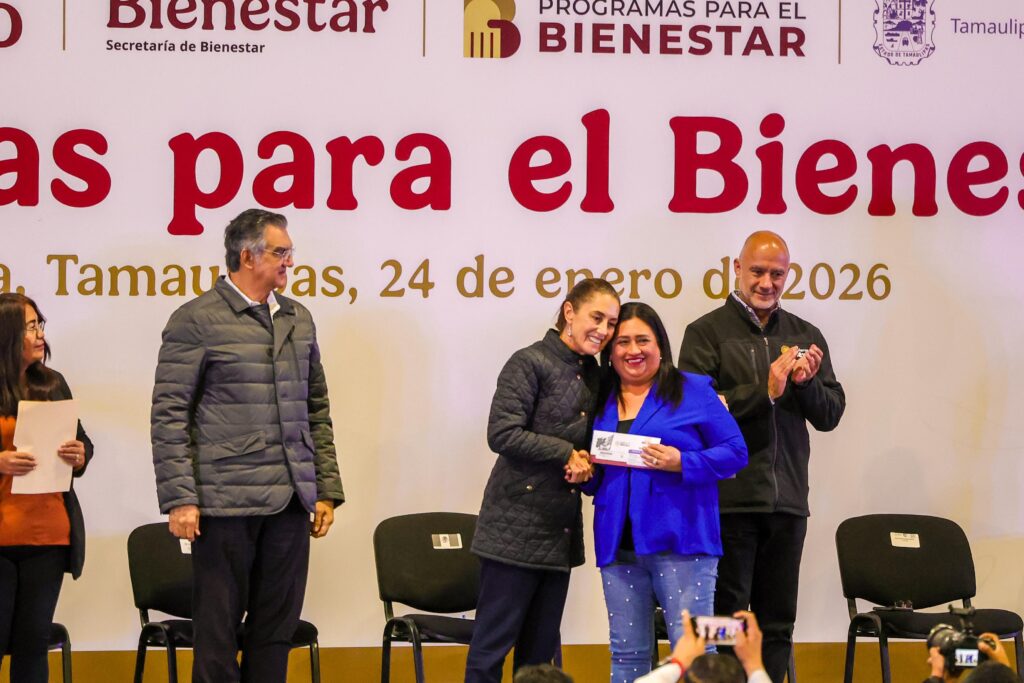 Durante la entrega de apoyos de los programas de Viviendas del Bienestar, en presencia del Alcalde reynosense, Sheinbaum Pardo reconoció la lucha de los beneficiados y el trabajo de quienes están al frente de las dependencias asociadas a la vivienda, como INFONAVIT e INSUS, entre otras, y formalizó la entrega de 44 casas habitación del fraccionamiento Florencia.