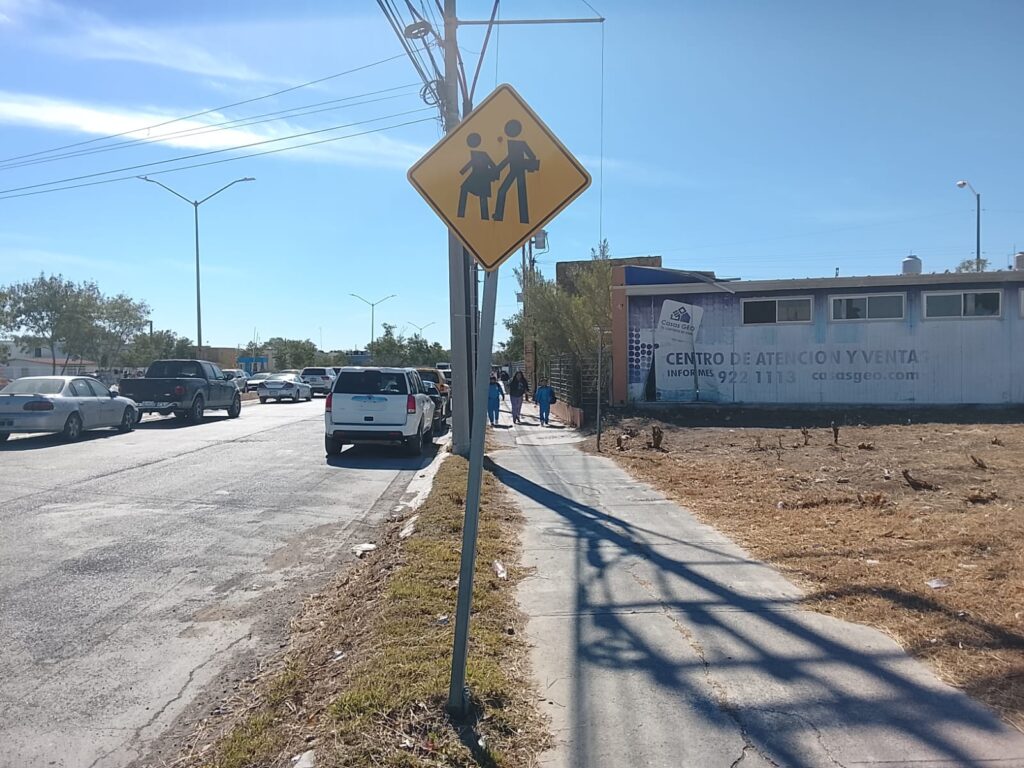Reynosa, Tam. – En atención a una petición ciudadana y por instrucciones del Presidente Municipal Carlos Peña Ortiz, el departamento de Ingeniería Vial del Gobierno de Reynosa instaló señalamientos de cruce escolar en la ubicación: