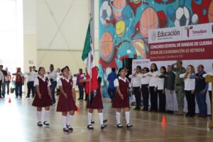 Reynosa, Tam.-  Con el objetivo de fortalecer los valores cívicos, el respeto a los símbolos patrios y la formación integral de las y los estudiantes, el Gobierno de Reynosa impulsó la realización del Concurso Estatal de Bandas de Guerra y Escoltas, etapa de Coordinación 02 Reynosa.