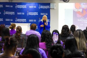 Reynosa, Tam.- En el marco del Día Internacional de la Mujer, la destacada ciudadana Juanita Sánchez fue homenajeada en la Universidad Tamaulipeca, donde compartió su experiencia, liderazgo y compromiso social ante un auditorio conformado en su mayoría por jóvenes estudiantes.