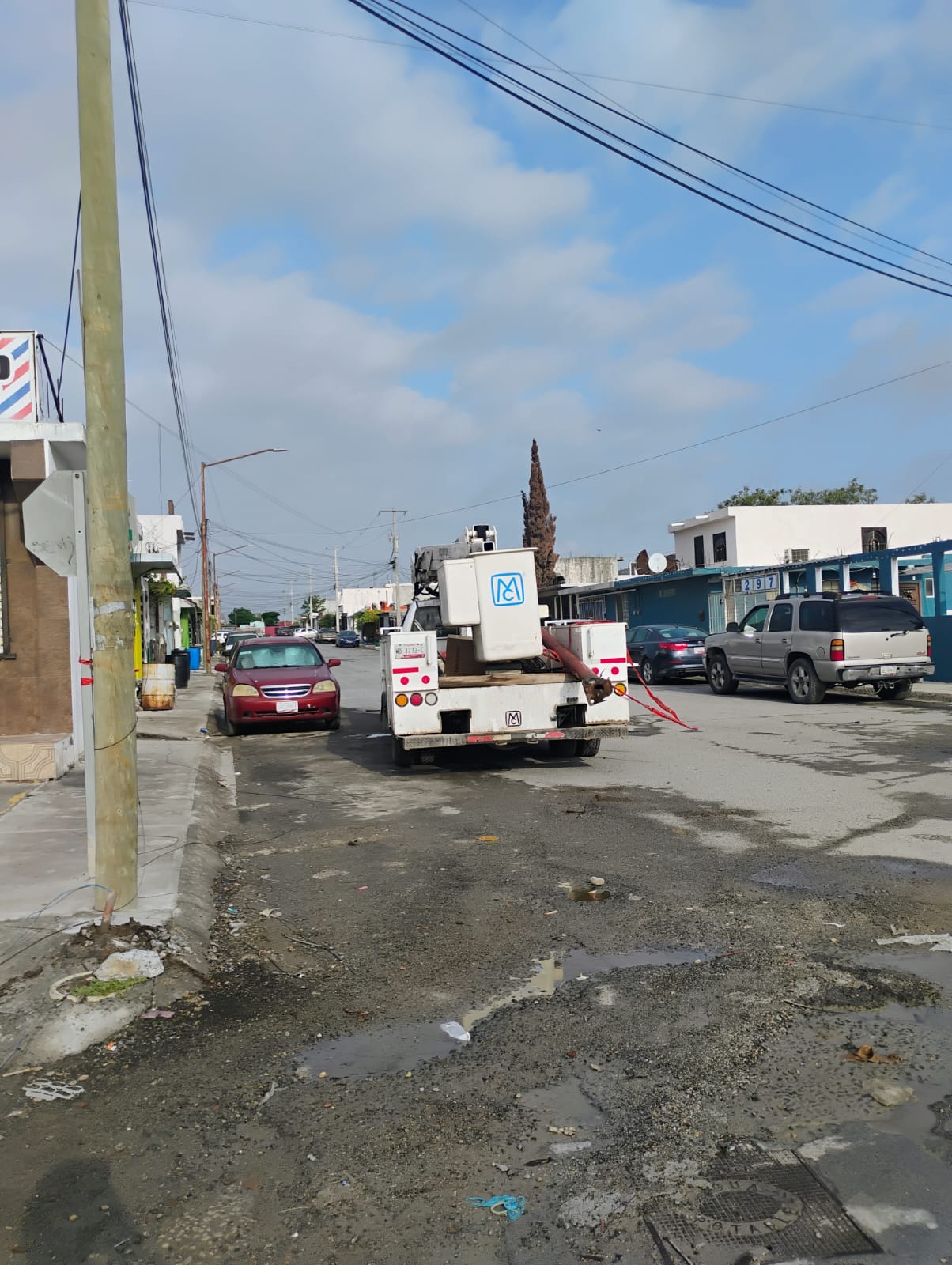 Las acciones continuaron en la colonia Hidalgo, donde se taló una palma caída en la calle Camargo y se cortó a la mitad otra palmera para prevenir un futuro accidente. Ya por la tarde, en el Fraccionamiento Reynosa, se acudió a reinstalar una lámpara que también resultó derribada.
