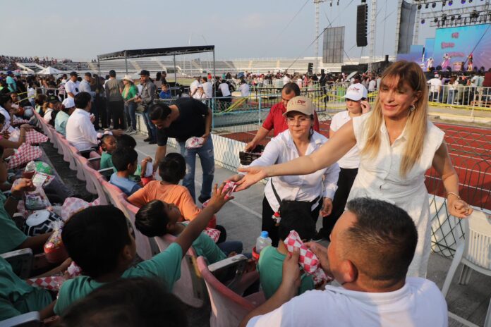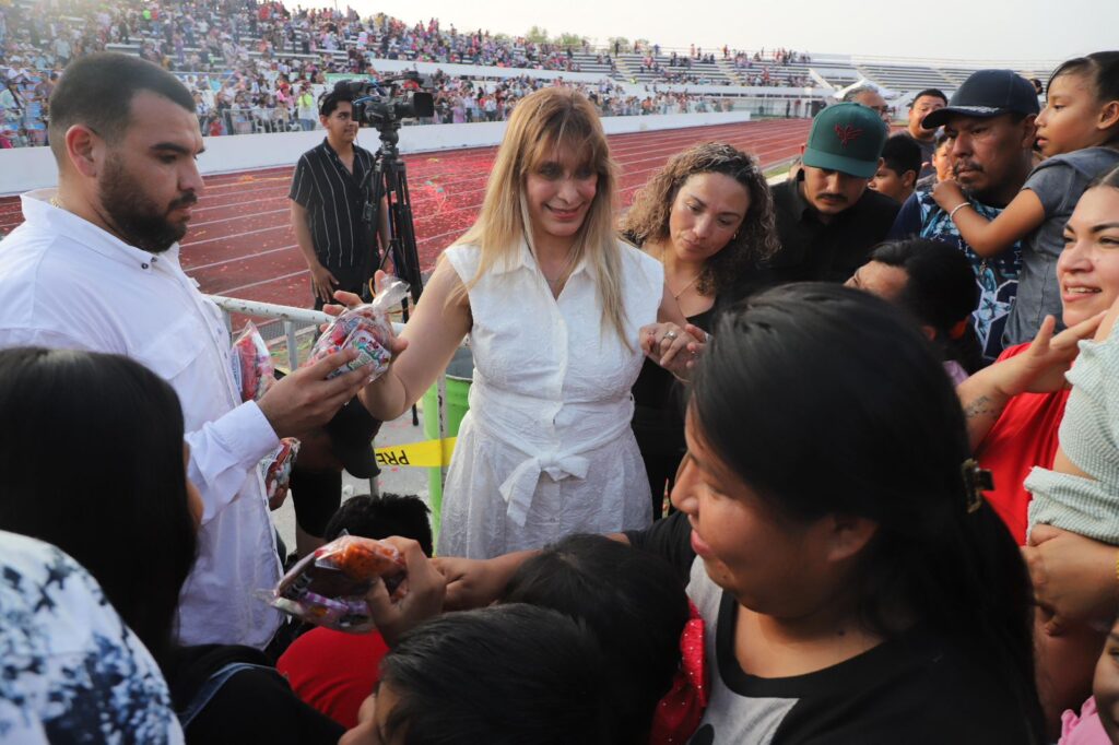 Reynosa, Tam.- La senadora Maki Esther Ortiz Domínguez asistió a la celebración del Día del Niño 2026 en la que más de 15 mil personas disfrutaron del show infantil de Luli Pampín, organizado por el presidente municipal Carlos Peña Ortiz. en el Polideportivo Reynosa,